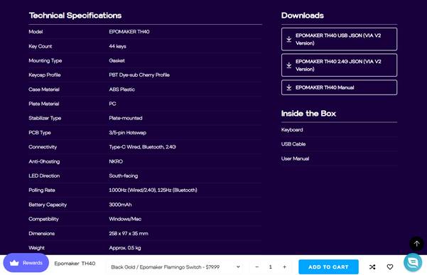 EPOMAKER TH40 USB JSON (VIA V2 Version) > 케이블로 직접 연결 시 사용