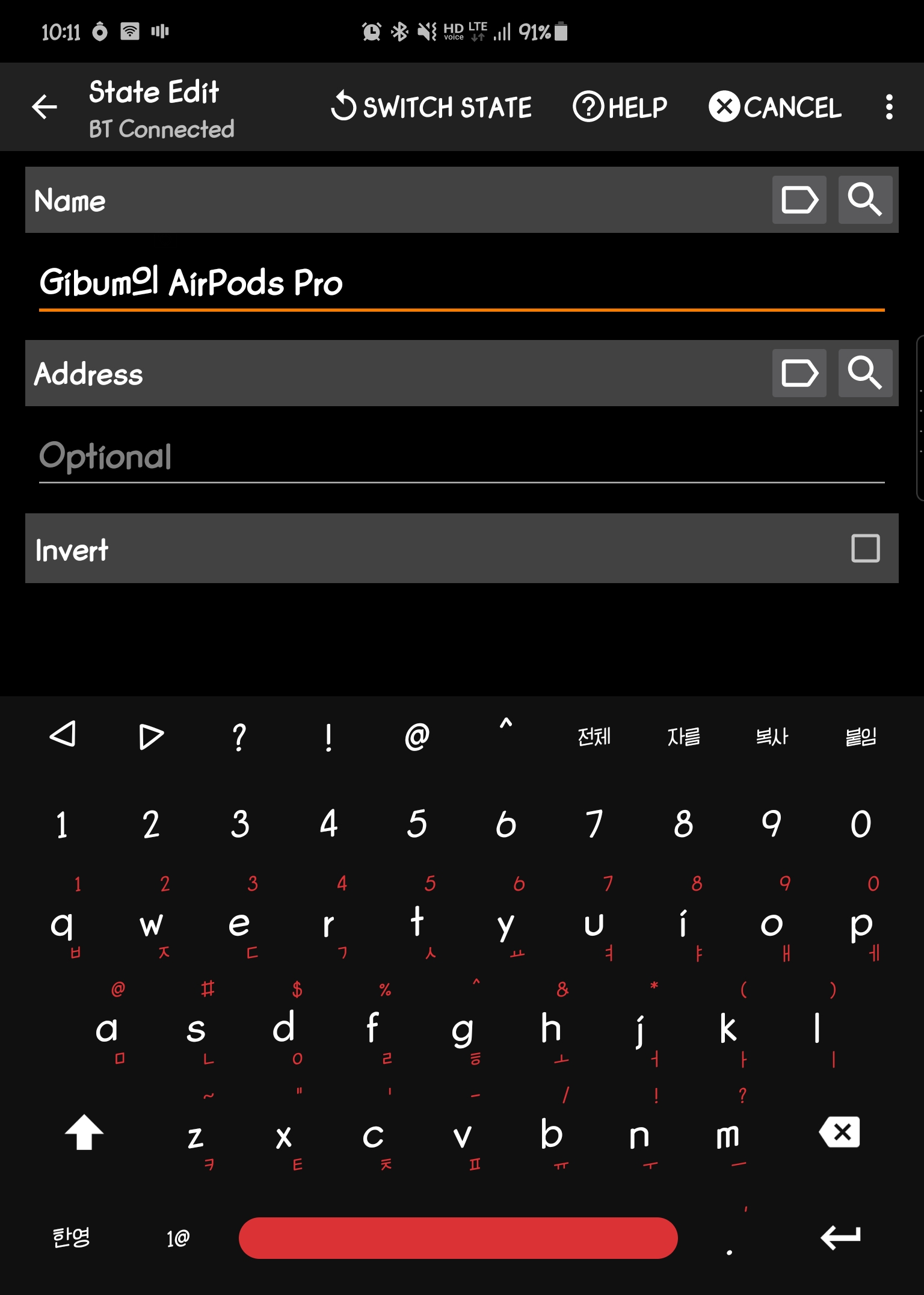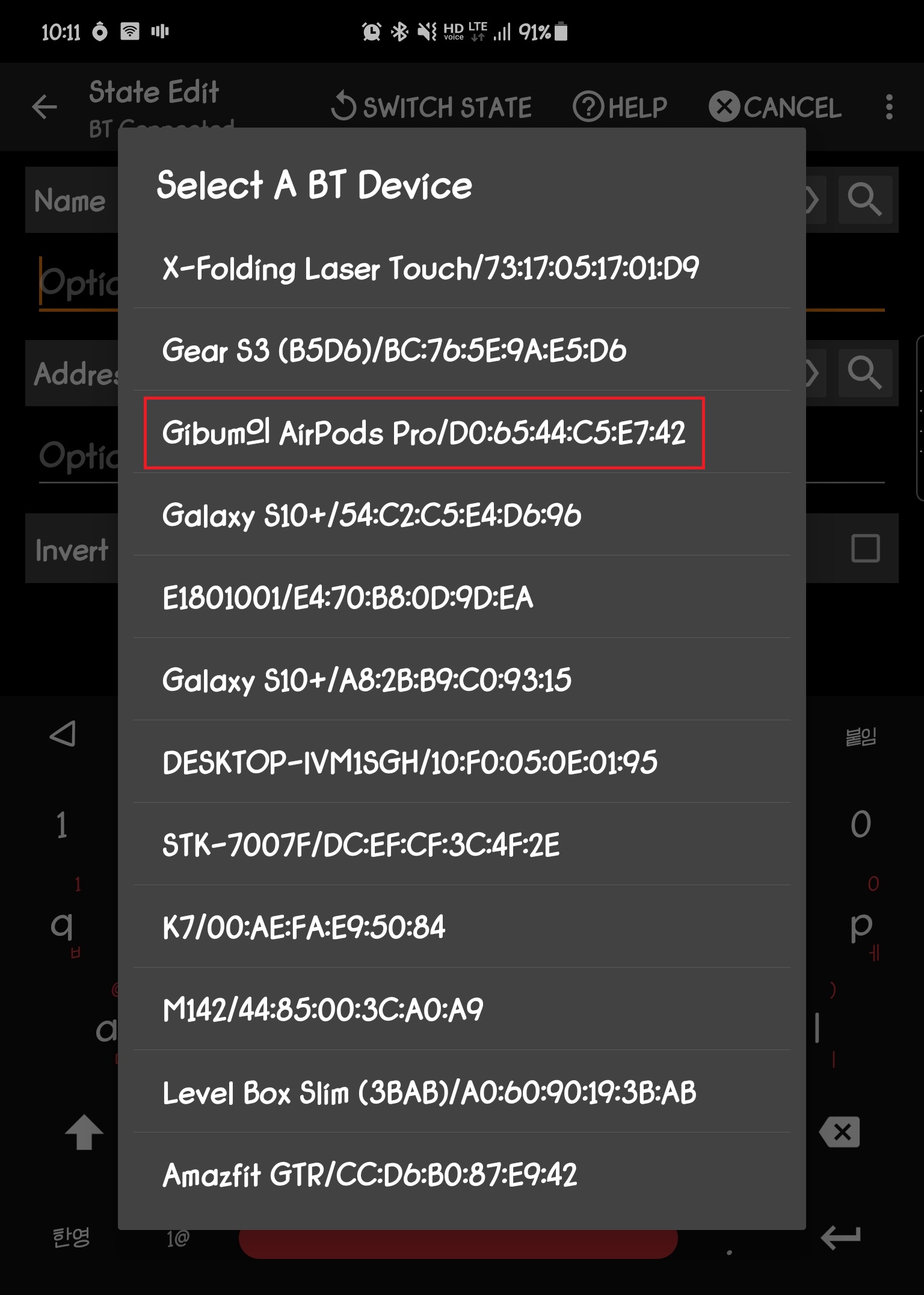 2번, 리스트가 나오는데 우리는 블루투스 상태로 작업을 만들기 때문에 State 를 클릭합니다.