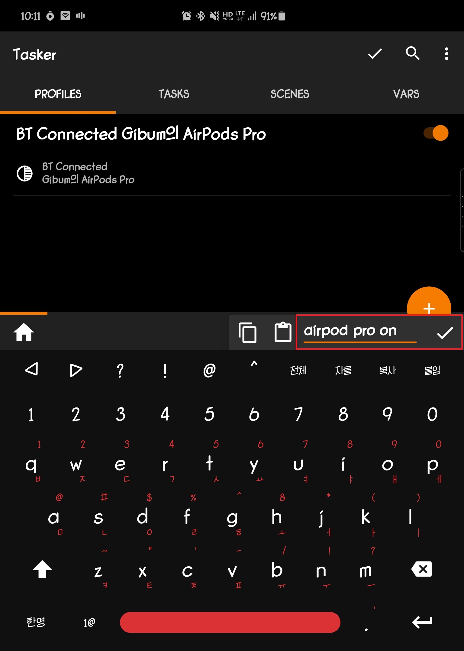 8) 작업(Task) 이름을 작성합니다. 저는 airpod pro on 이라고 만들었습니다.