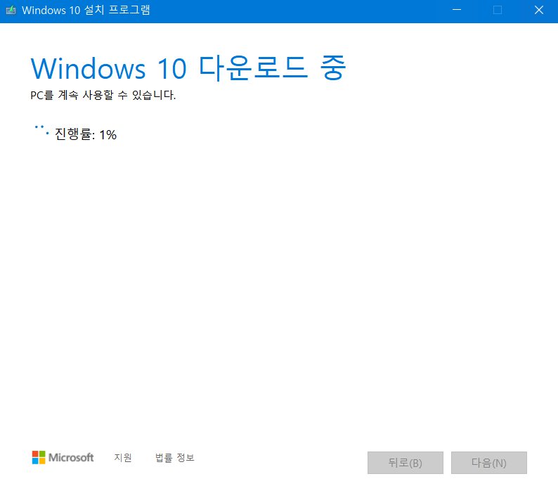 - 윈도우 10 다운로드가 진행됩니다. 완료가 되면 다음을 클릭합니다.