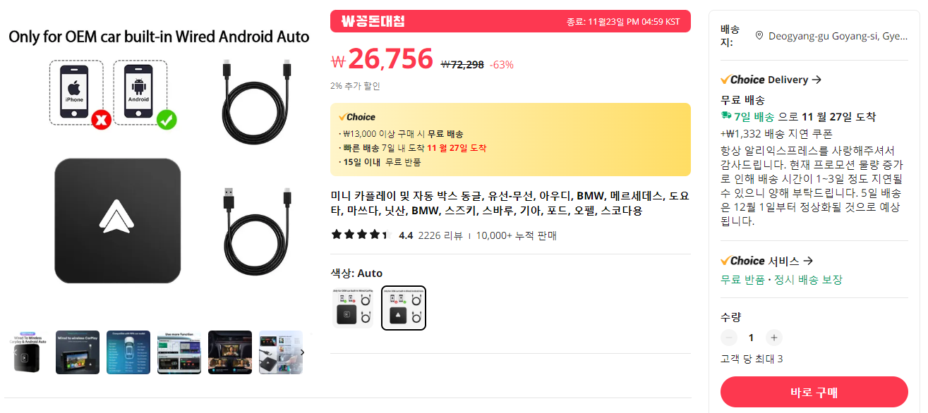 (실제로 제품 페이지에 안드로이드 오토와 카플레이 디바이스를 옵션으로 선택할 수 있습니다)