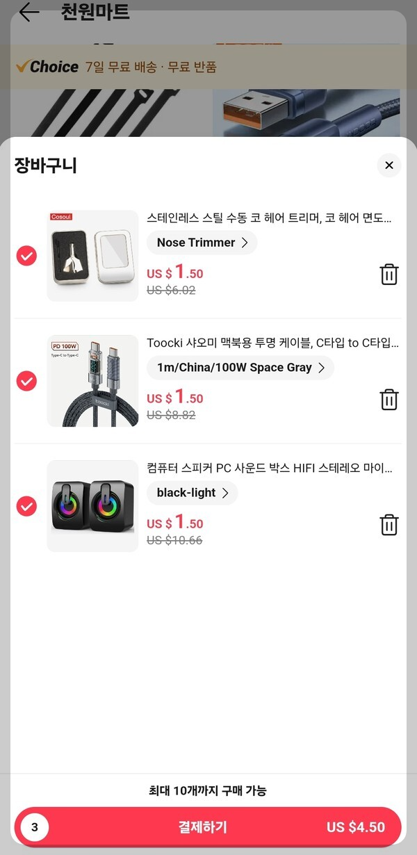 알리익스프레스(Aliexpress) 의 천원마트에서 싼 맛에 이것 저것 구매했으나
