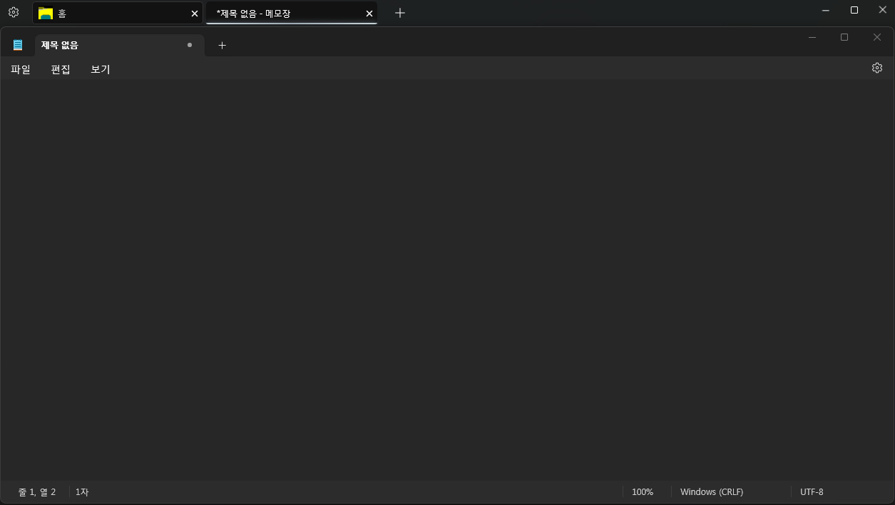 탐색기와 메모장이 그룹핑되어 한 개의 창안에 모여있는 것을 볼 수 있습니다.