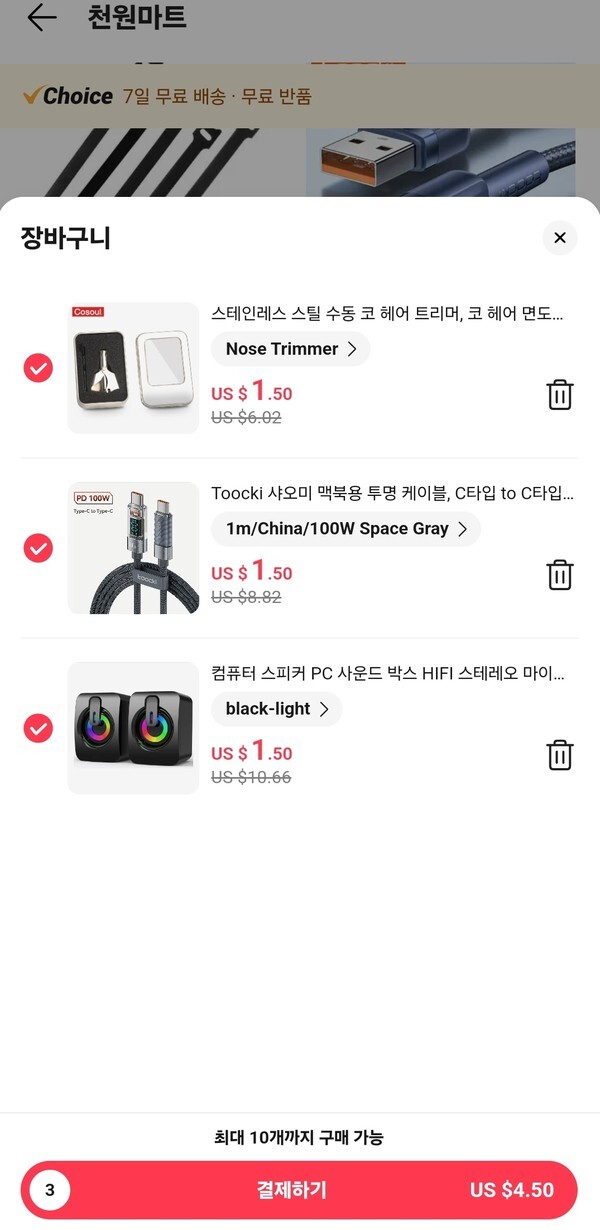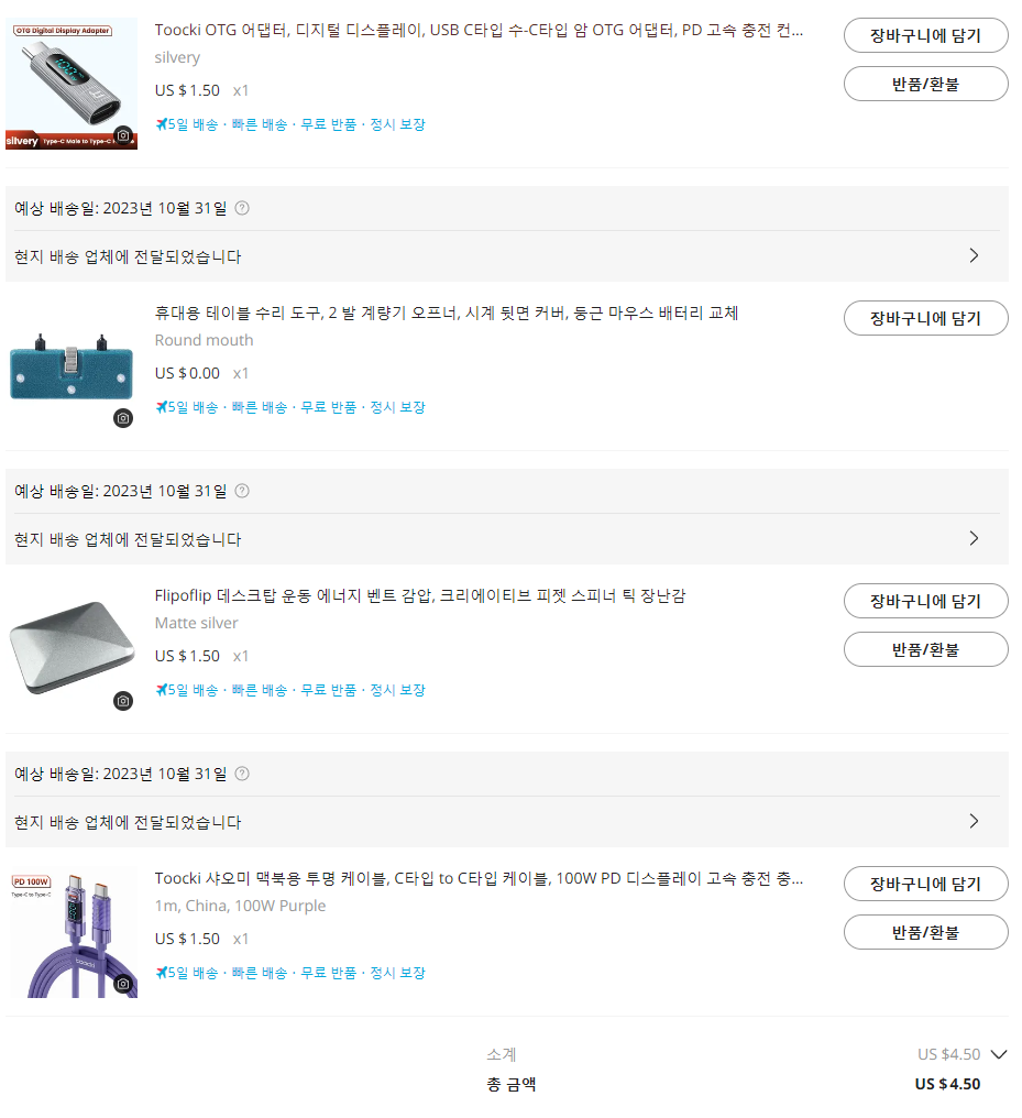 알리익스프레스(Aliexpress) 의 천원마트에서 싼 맛에 이것 저것 구매했으나 만족스러운 것도 있고, 역시 싼마이 제품도 있네요. 제가 사용해본 것 중에서 아래 3가지가 만족도가 높네요. 개인적인 견해이니 참고하시고 즐거운 쇼핑 하세요 ^^ 1. 스피커 $1.5 : 모니터의 3.5mm 단자와 USB 단자에 연결하여 간단히 사용할 수 있고, 2,000원 가격대비 소리가 좋아서 깜짝 놀랐습니다. 간단한 PC용 스피커 필요하시면 강추합니다. (추가로 FxSound 라는 무료 프로그램을 같이 이용하시면 소리가 더욱 풍성해집니다) - usb 전원 스피커, LED 조명 효과, 음량 조절 2. Toocki 케이블 $1.5 : 100W 지원하고 전력(watt)의 상태를 볼 수 있어 노트북, 태블릿, 핸드폰에 잘 사..